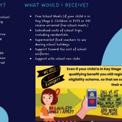 Although all children in Reception, Year 1 and Year 2 will now automatically receive free school meals, if your child would also be eligible for free meals due to the level of household income please ensure that you apply through this route as without your application, the school will not receive the associated Pupil Premium funding.